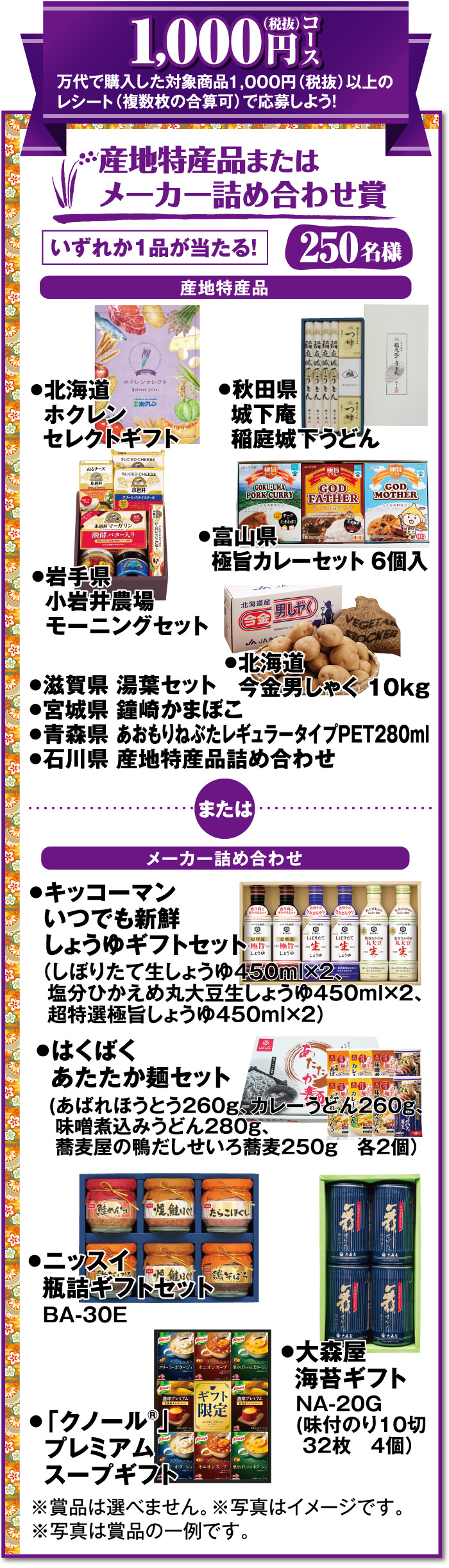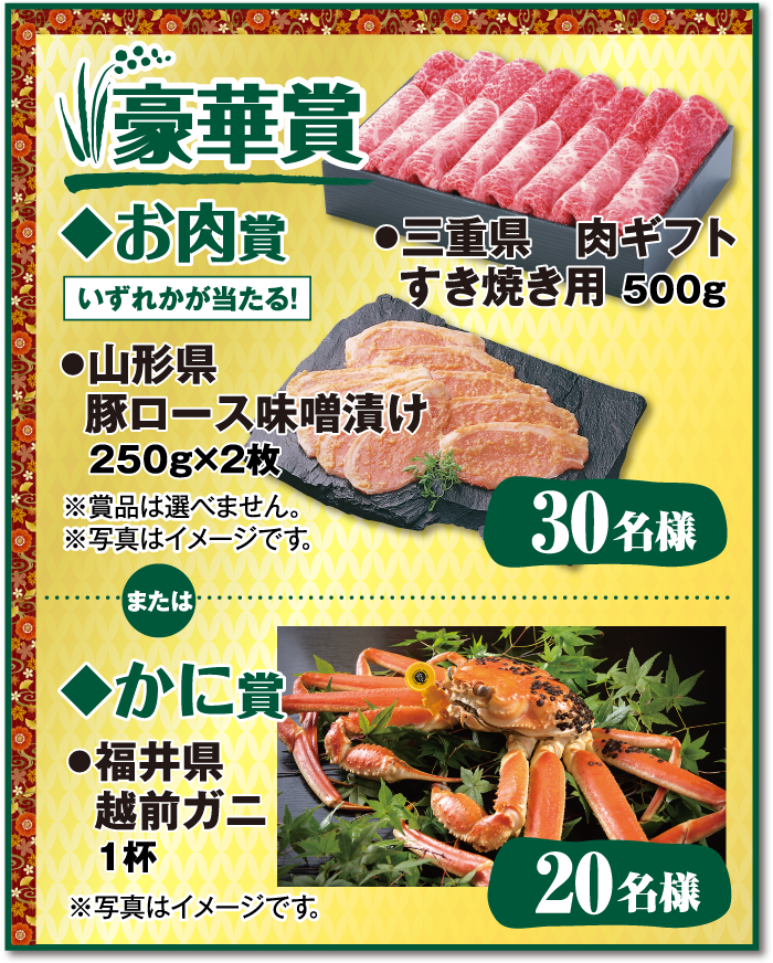 ご希望賞品をお選びください(※画像はイメージです)。
